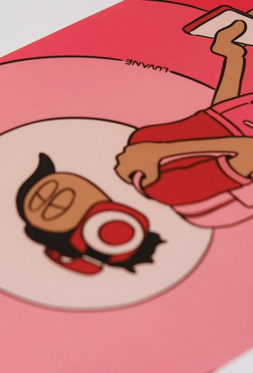 The prints in the shop are selected by LUVANE and feature cartoons and illustrations on a variety of themes. Each print is available in various sizes and types of materials.